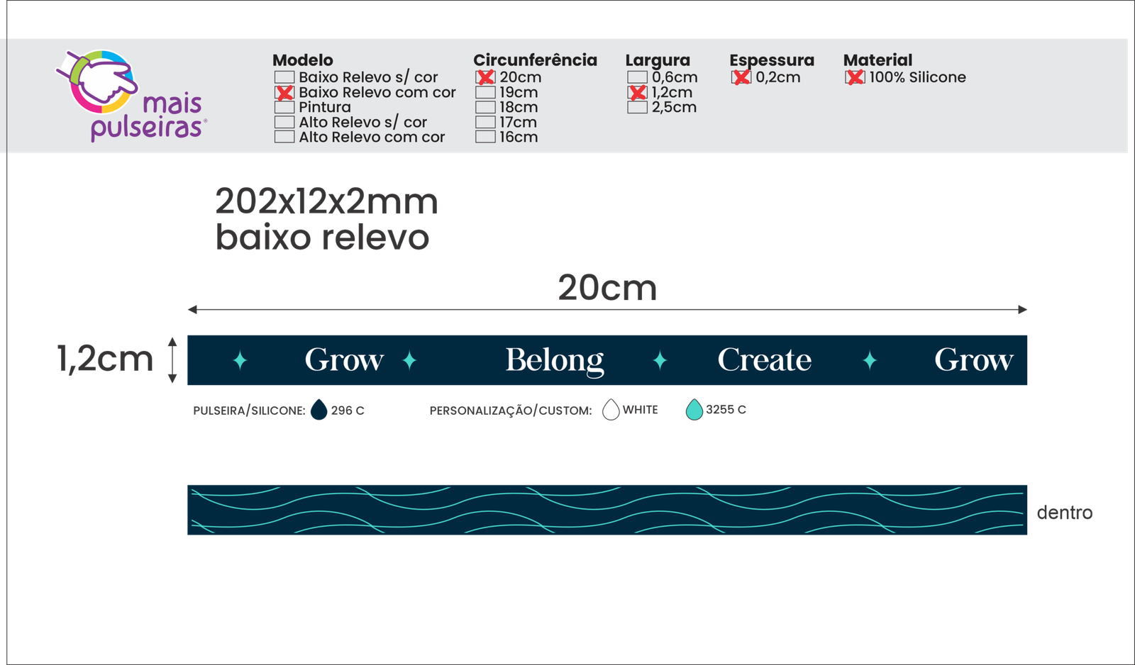 Configure a pulseira usando o link: CRIE SUA PULSEIRA