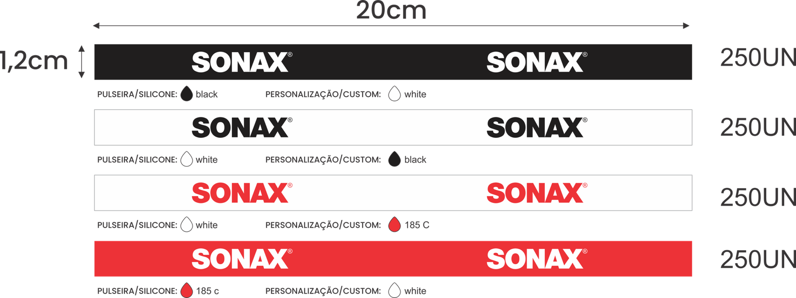 *As cores podem ser variadas, respeitando a quantidade mínima de 20 unidades por cor;
